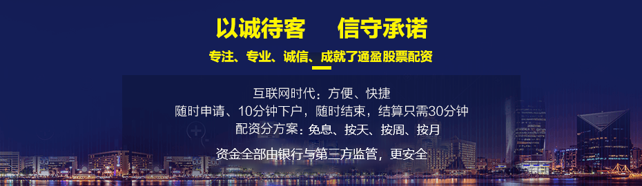 ◆通盈配资(www.70883.com)隶属于宁波榕欣创业投资合伙企业,是国内领先的互联网股票配资平台,注册资本15200万元人民币。平台专注于股票投资、金融服务、及资产管理的专业机构,平台以帮助用户安全、高效和快速财富增值为主线的证券配资借贷业务的居间服务网站。致力于为广大缺乏资金的股民提供安全低息便捷的网络股票配资服务。